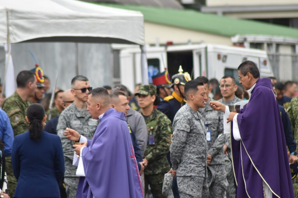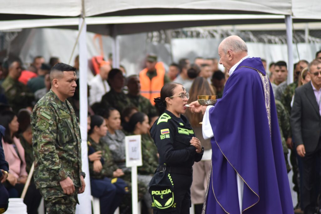 La celebración contó con la presencia del Monseñor Jorge Cuasialpud, Vicario General del Obispado Castrense de Colombia, así como de los Vicarios generales de las Fuerzas Militares y de Policía; el Padre Benedicto Peña, Vicario General del Ejército Nacional; el Padre Gelbert Rojas, Vicario General de la Armada Nacional; y el Padre William Luz, Vicario General de la Fuerza Aeroespacial Colombiana.