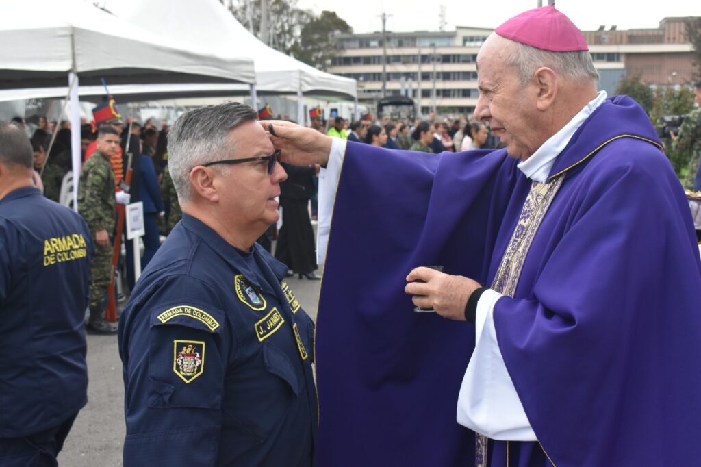 En la mañana de este miércoles, Monseñor José Roberto Ospina Leongómez, Obispo Emérito de Buga y Administrador Apostólico del Obispado Castrense de Colombia, presidió la Eucaristía del Miércoles de Ceniza en las instalaciones del Ministerio de Defensa Nacional, marcando así el inicio de la Cuaresma para los militares y policías de Colombia.