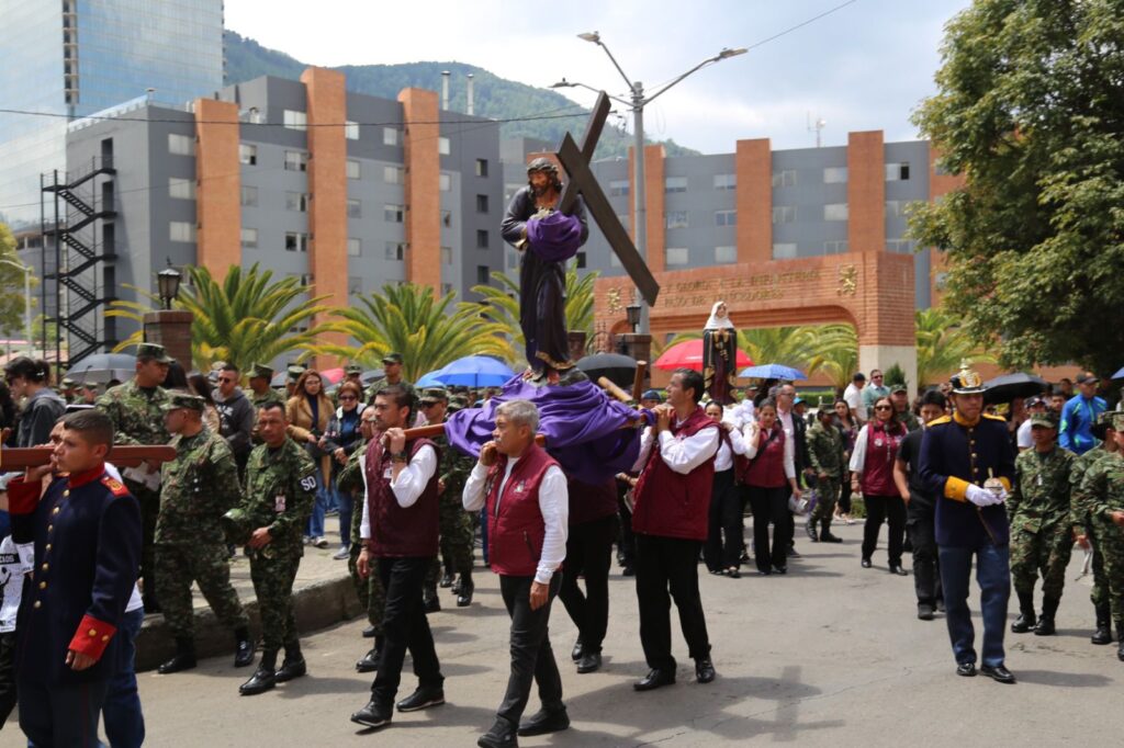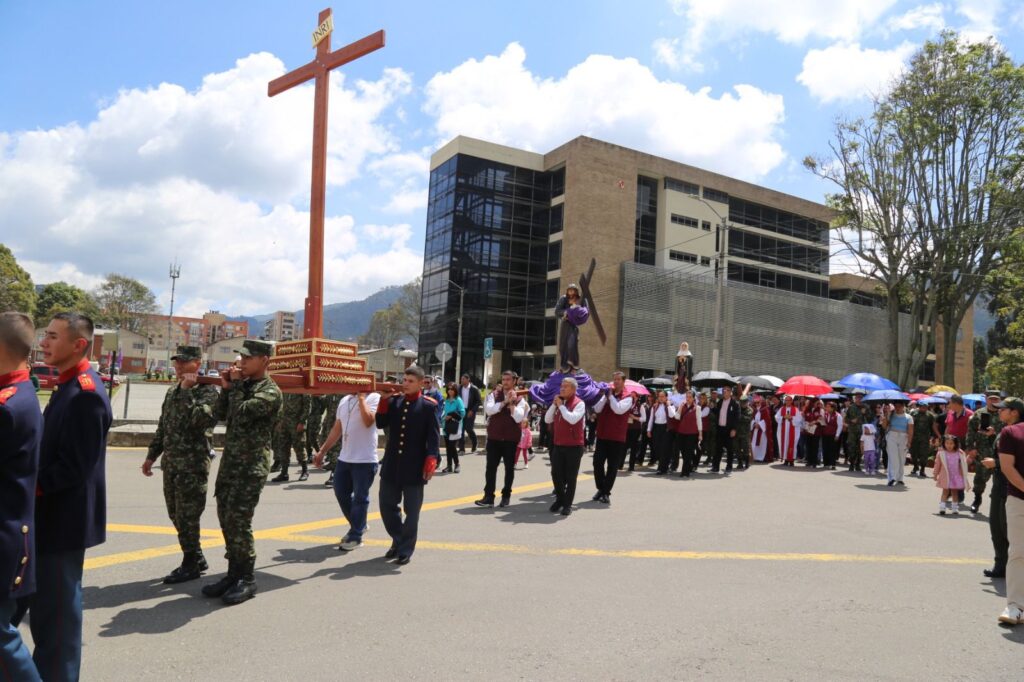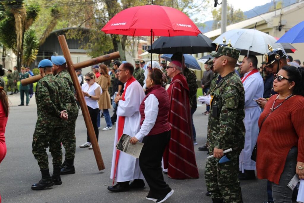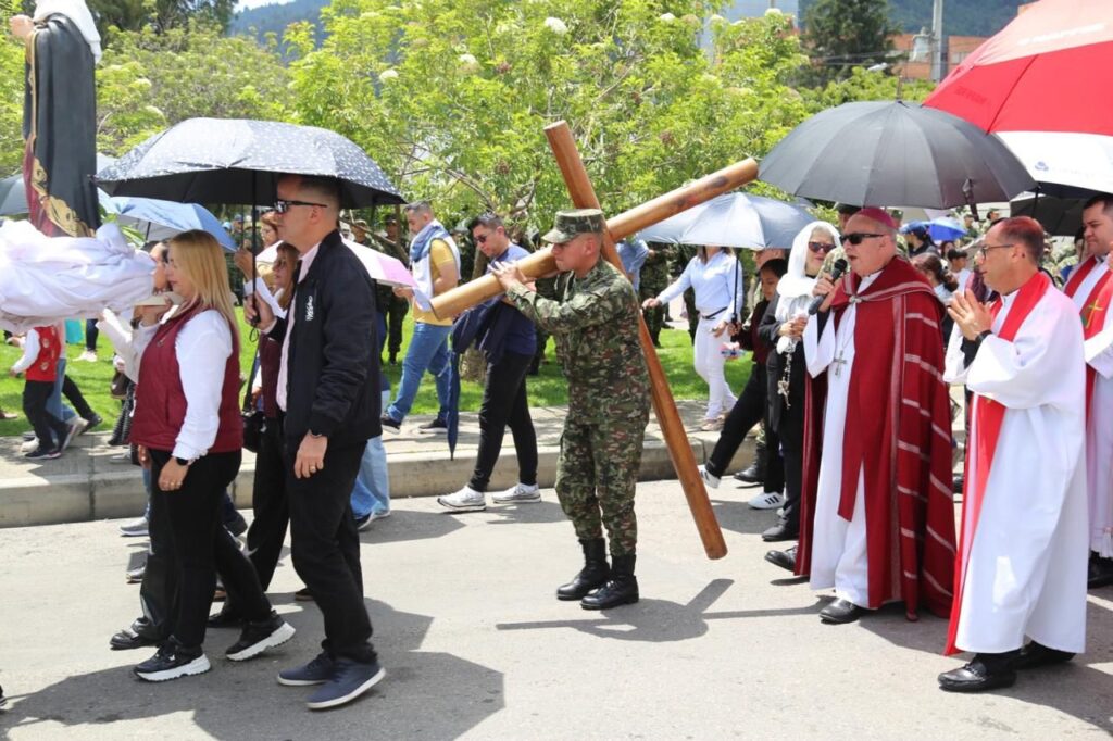 La jornada inició con el rezo del Santo Viacrucis, presidido por Monseñor José Roberto Ospina Leongómez, Obispo Emérito de Buga y Administrador Apostólico del Obispado Castrense de Colombia. A través de este acto, los asistentes acompañaron espiritualmente a Cristo en su camino hacia la cruz, meditando en su pasión y entrega por la humanidad.