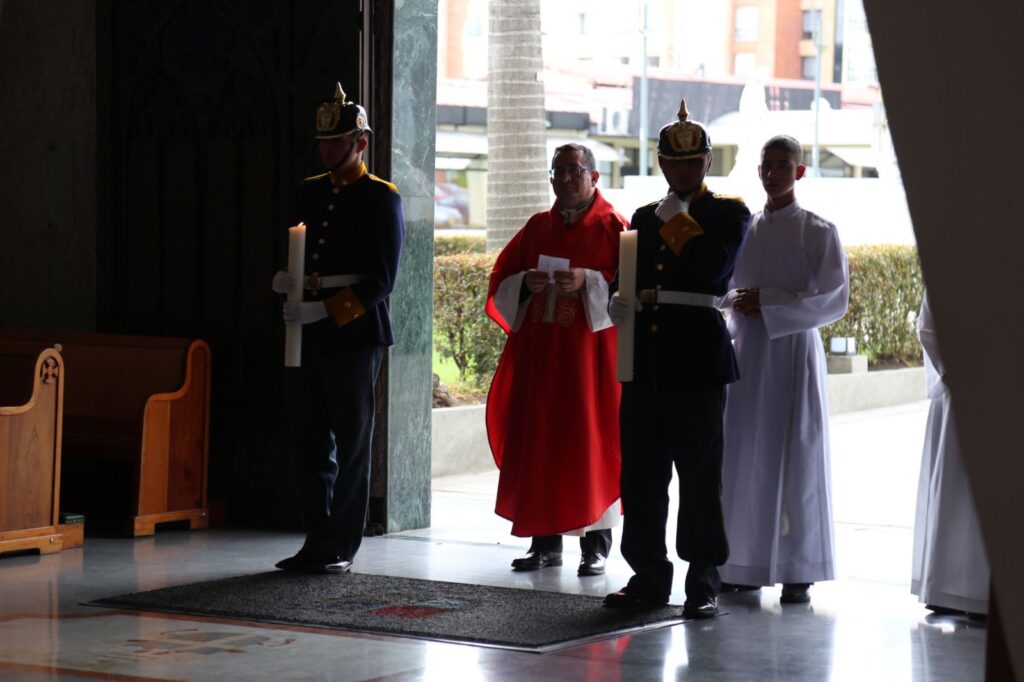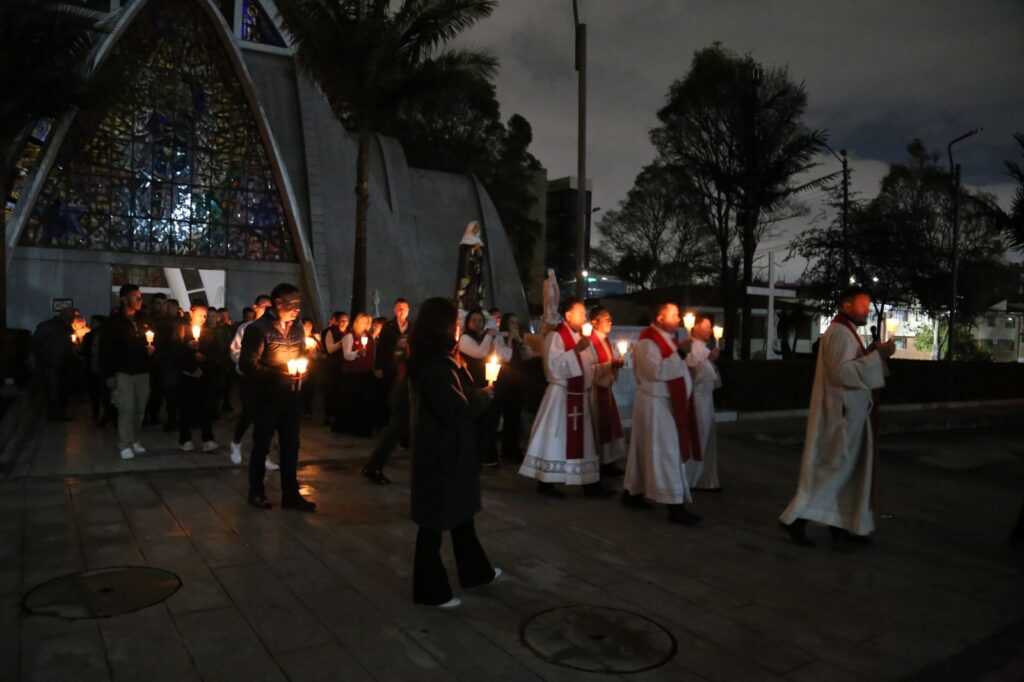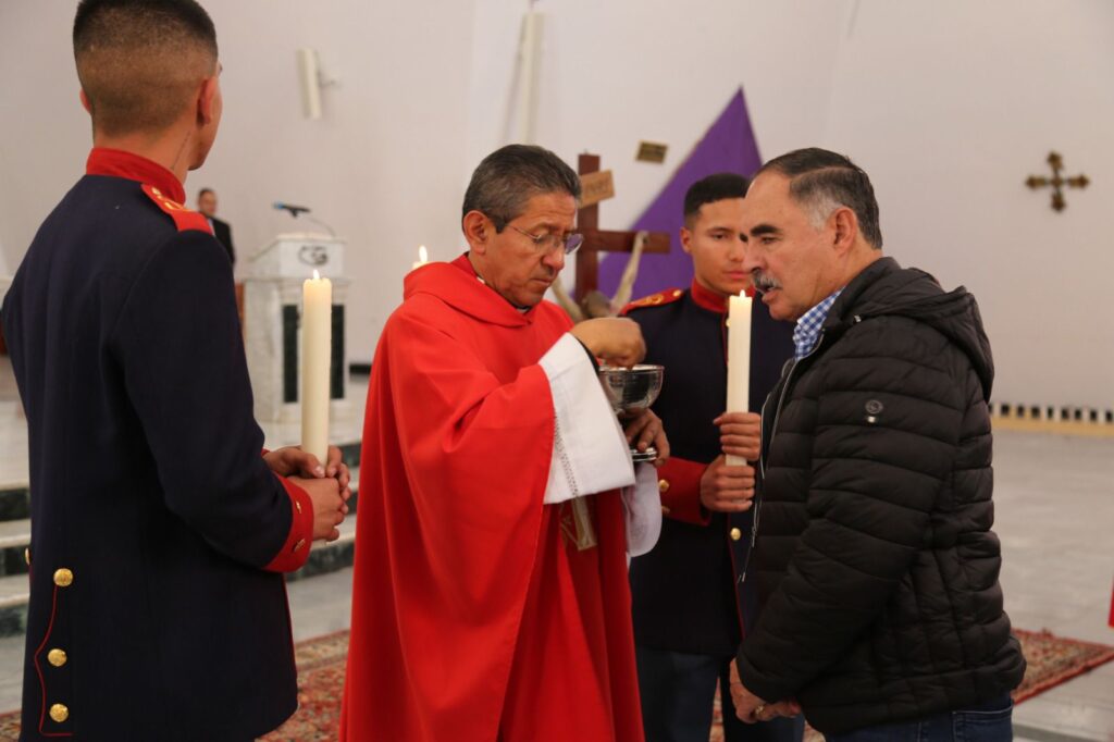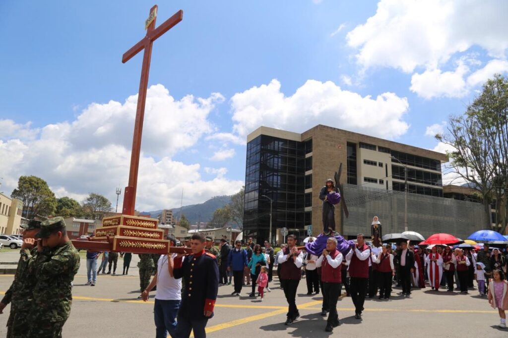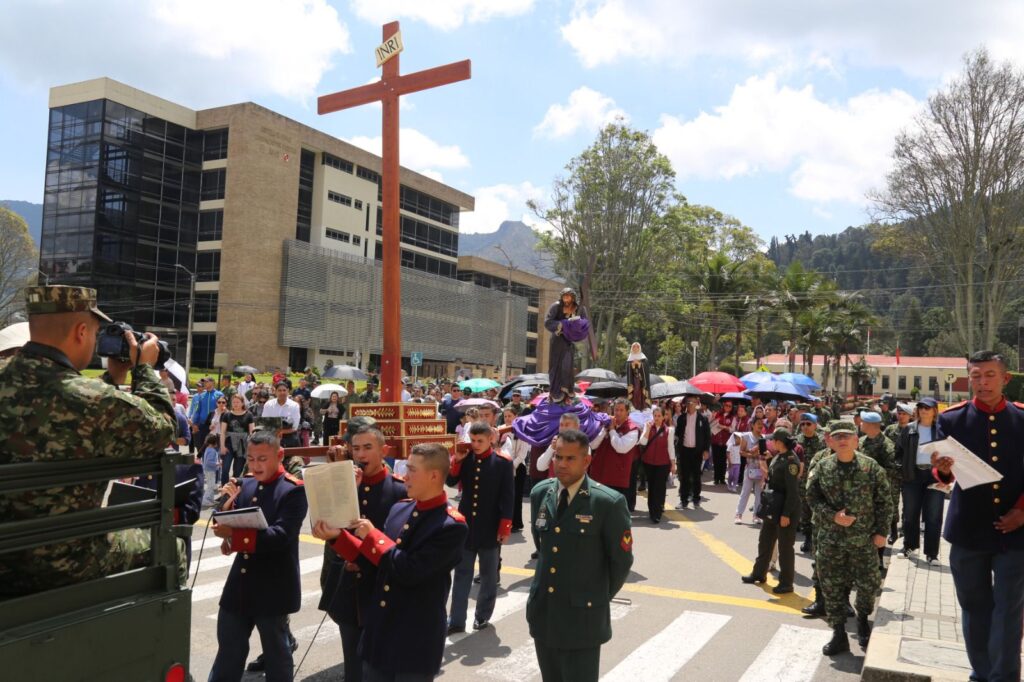 La jornada inició con el rezo del Santo Viacrucis, presidido por Monseñor José Roberto Ospina Leongómez, Obispo Emérito de Buga y Administrador Apostólico del Obispado Castrense de Colombia. A través de este acto, los asistentes acompañaron espiritualmente a Cristo en su camino hacia la cruz, meditando en su pasión y entrega por la humanidad.
