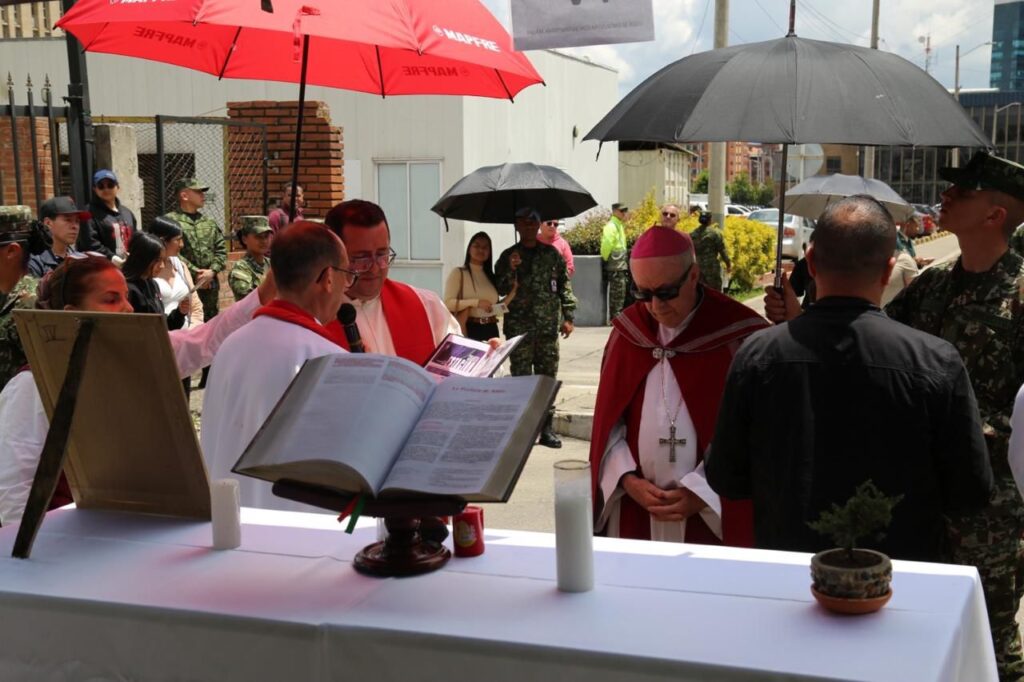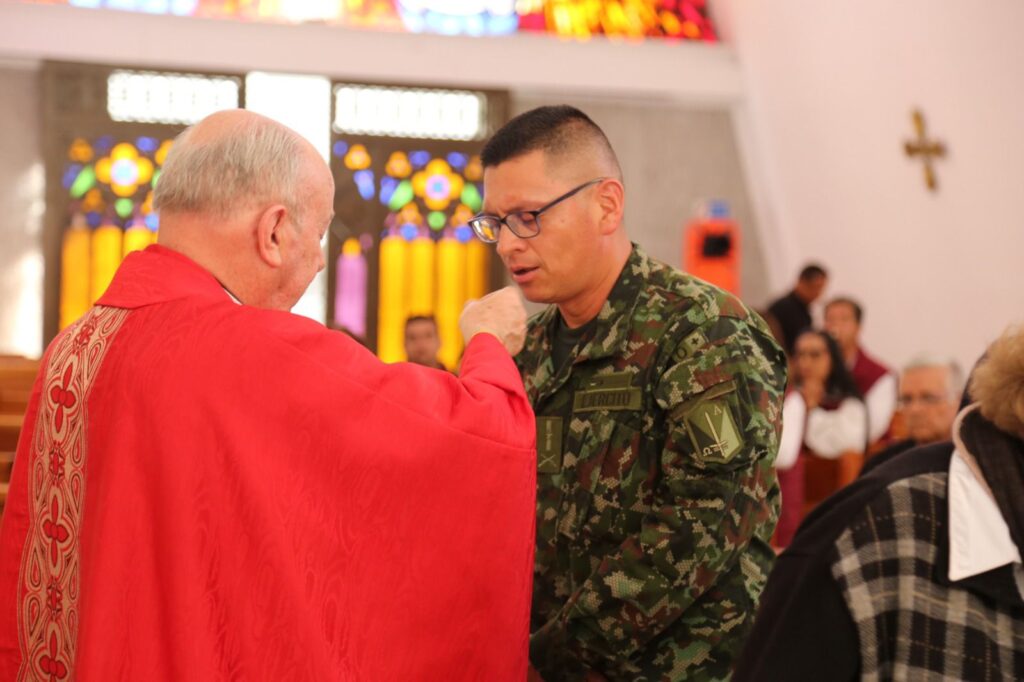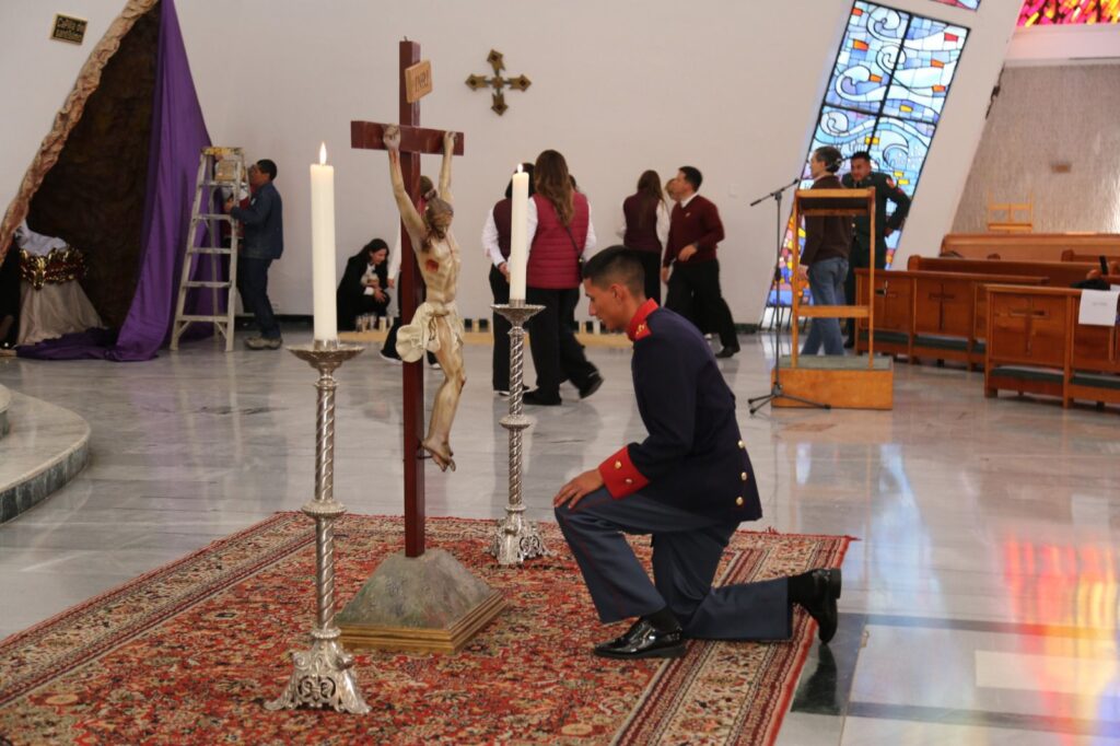 El día de ayer, Viernes Santo, en la Catedral Castrense Jesucristo Redentor, ubicada en el Cantón Norte de Bogotá, se llevaron a cabo las solemnes celebraciones propias de esta fecha central de la Semana Santa, congregando a fieles, militares, policías y sus familias en un ambiente de oración y reflexión.