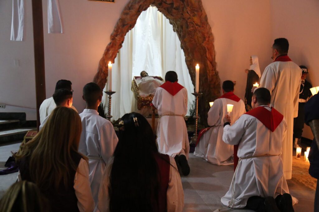 En horas de la noche, la comunidad participó en el tradicional Sermón de las Siete Palabras, una reflexión sobre las últimas frases de Jesús en la cruz, que permitió profundizar en su mensaje de perdón, esperanza y salvación. La jornada culminó con la visita al Santo Sepulcro, que invitó a la espera confiada en la Resurrección.