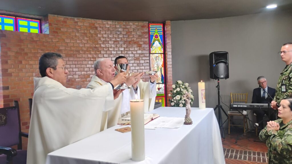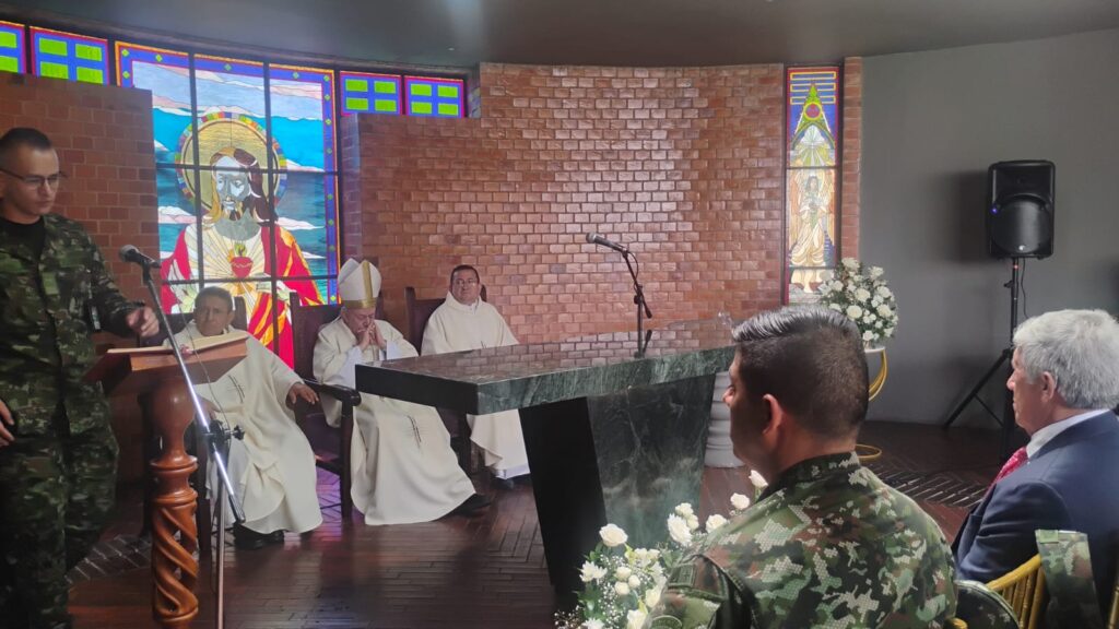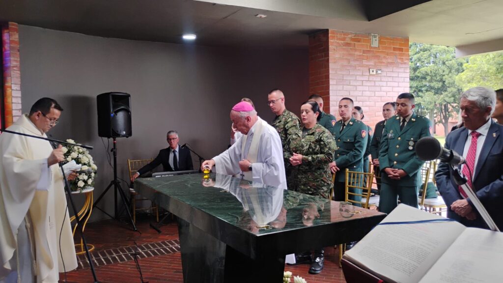 La celebración tuvo lugar en el Grupo de Ingenieros Militares “Francisco José de Caldas”, en la sede campestre ubicada entre Chía y Cota, donde militares, sus familias y personal civil se unieron en oración para encomendar este nuevo templo al servicio de Dios y de quienes, con vocación, sirven a la patria.