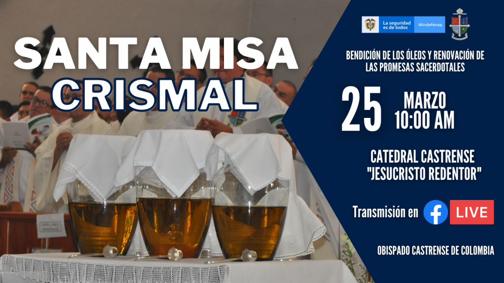 El día 25 de marzo a las 10:00 am se realizó la misa crismal, presidida por el nuestro Obispo Castrense Monseñor Víctor Manuel Ochoa Cadavid, concelebrada con algunos sacerdotes de la diócesis Castrense de la ciudad de Bogotá, en las instalaciones de la Iglesia Castrense «Jesucristo Redentor», los sacerdotes que no pudieron asistir a la […]