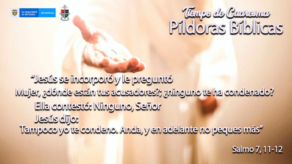 Jesús se incorporó y le preguntó: «Mujer, ¿dónde están tus acusadores?; ¿ninguno te ha condenado?». Ella contestó: «Ninguno, Señor». Jesús dijo: «Tampoco yo te condeno. Anda, y en adelante no peques más». San Juan 8, 10-11 Reflexión En el Evangelio, Jesús perdono a la mujer y dio una gran lección aquellos hombres, mostrando que la […]